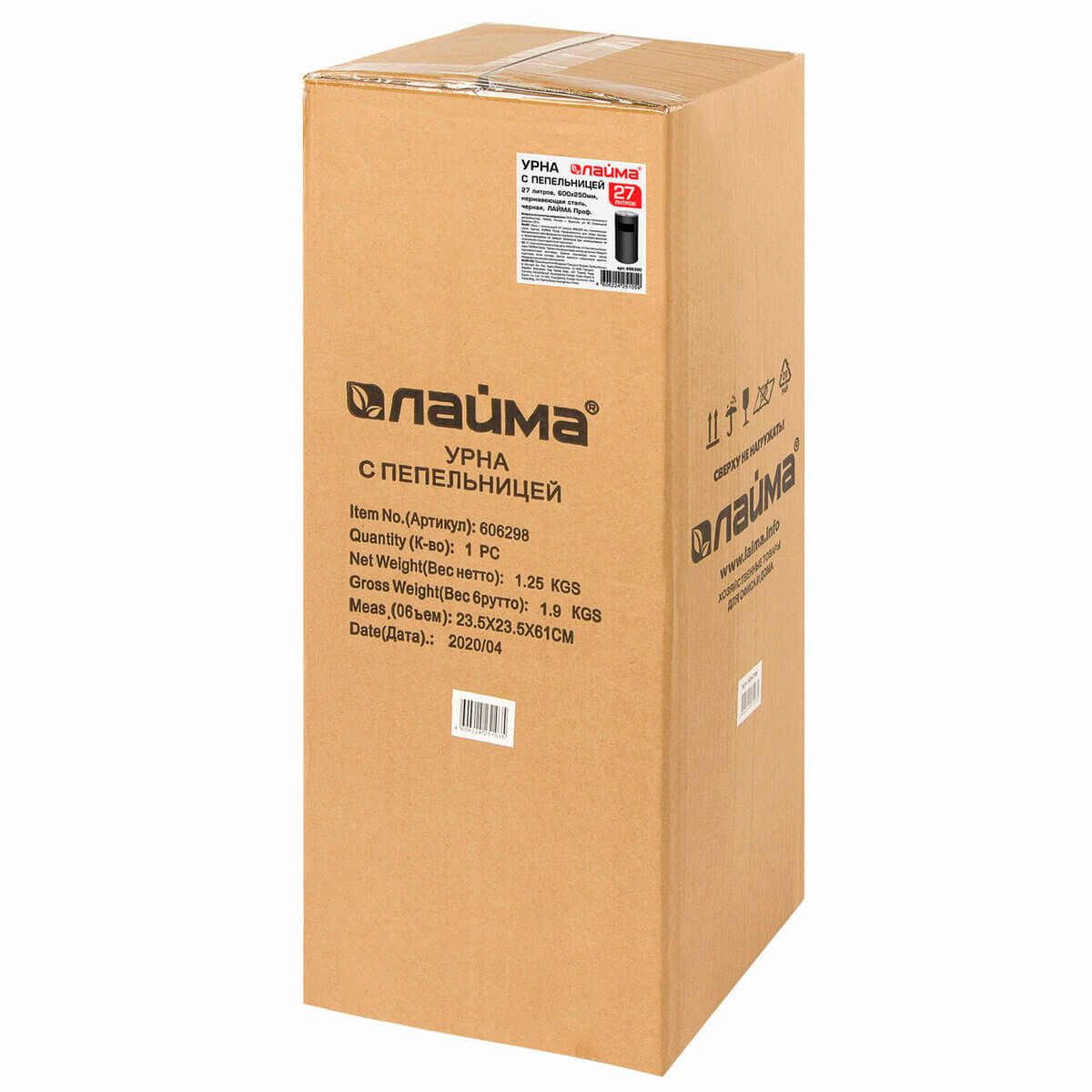 Урна с пепельницей 27 л, нержавеющая сталь, черная, LAIMA PROFESSIONAL